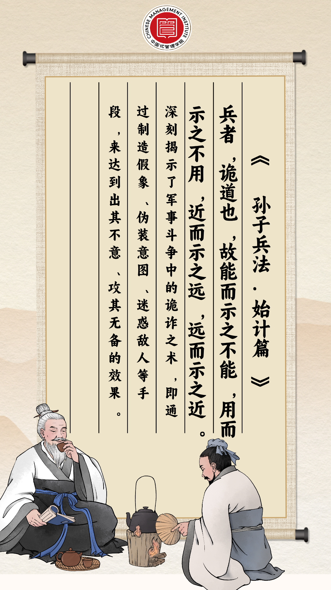 “兵者,诡道也,故能而示之不能,用而示之不用,近而示之远,远而示之近。”这句话是孙子兵法中关于军事策略与战术的核心理念之一。